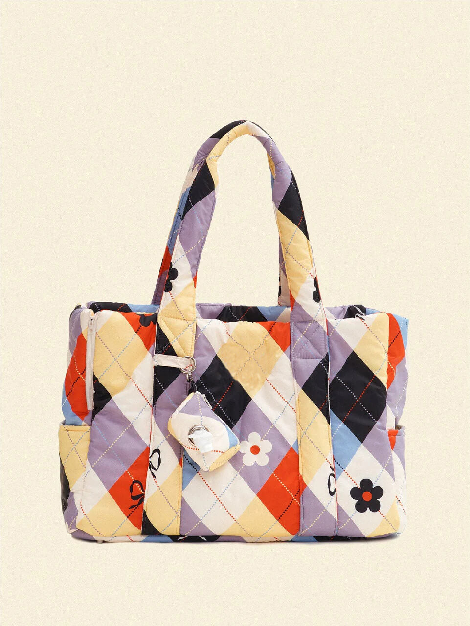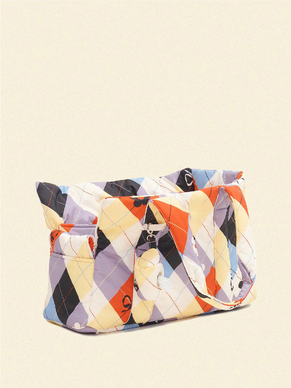 Light, easy to wash and water-resistant fabric. Soft padding and sturdy bottom. Strong handles but soft and comfortable on shoulders. Lots of pockets. Removable poop bag holder. Side zippers to open and close when needed. Safety hook.