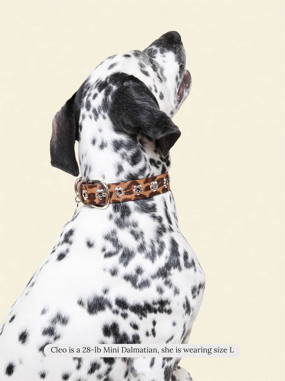 our collars are individually hand made. we cut each piece from a single piece of Italian buttero leather and hand press each stud into place. we work with a family owned leather production shop that’s been around for over thirty years. we do not mass produce these so each piece is truly one of a kind.