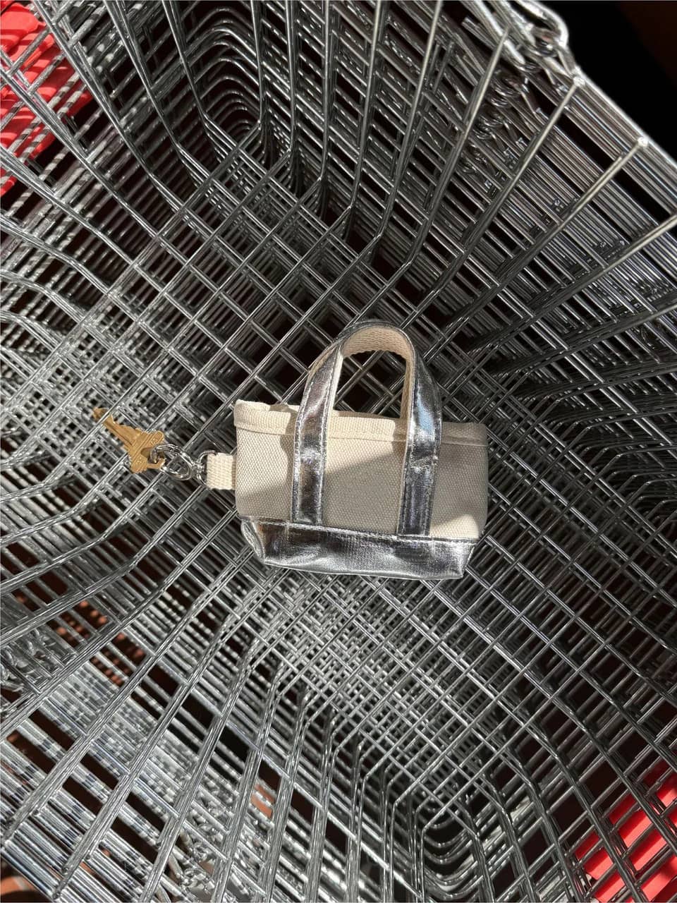 we found out that if you make a mini version of anything - it automatically becomes cute. exhibit a - a mini version of our dog carrier tote bag. full disclaimer - you cannot fit any dog or animal in this product. we repeat - this is NOT a full sized dog carrier. instead - you can hold poop bags, coins, cards, keys, and other things that are small. shooocuteeee.