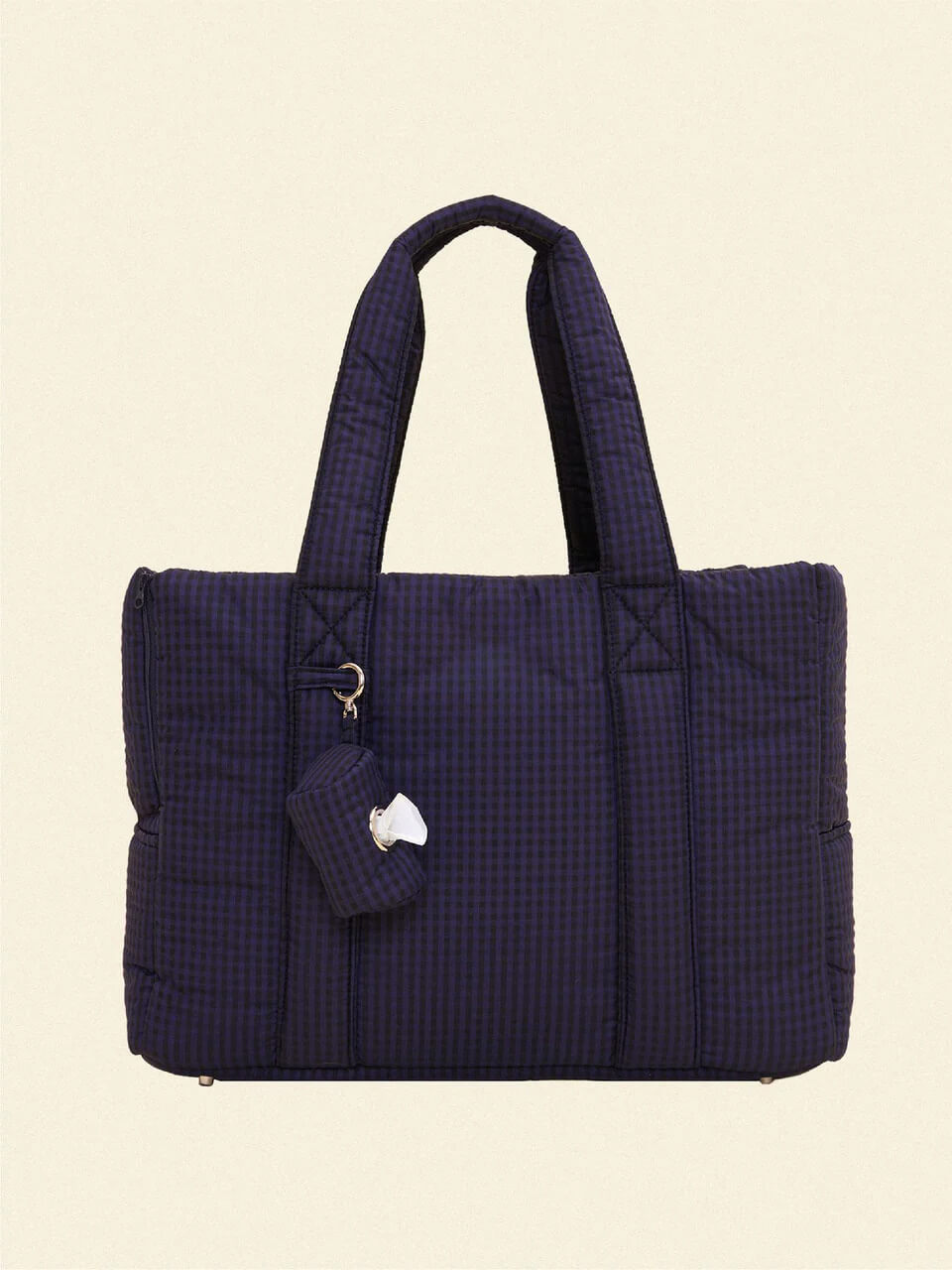 Light, easy to wash and water-resistant fabric. Soft padding and sturdy bottom. Strong handles but soft and comfortable on shoulders. Lots of pockets. Removable poop bag holder. Side zippers to open and close when needed. Safety hook.